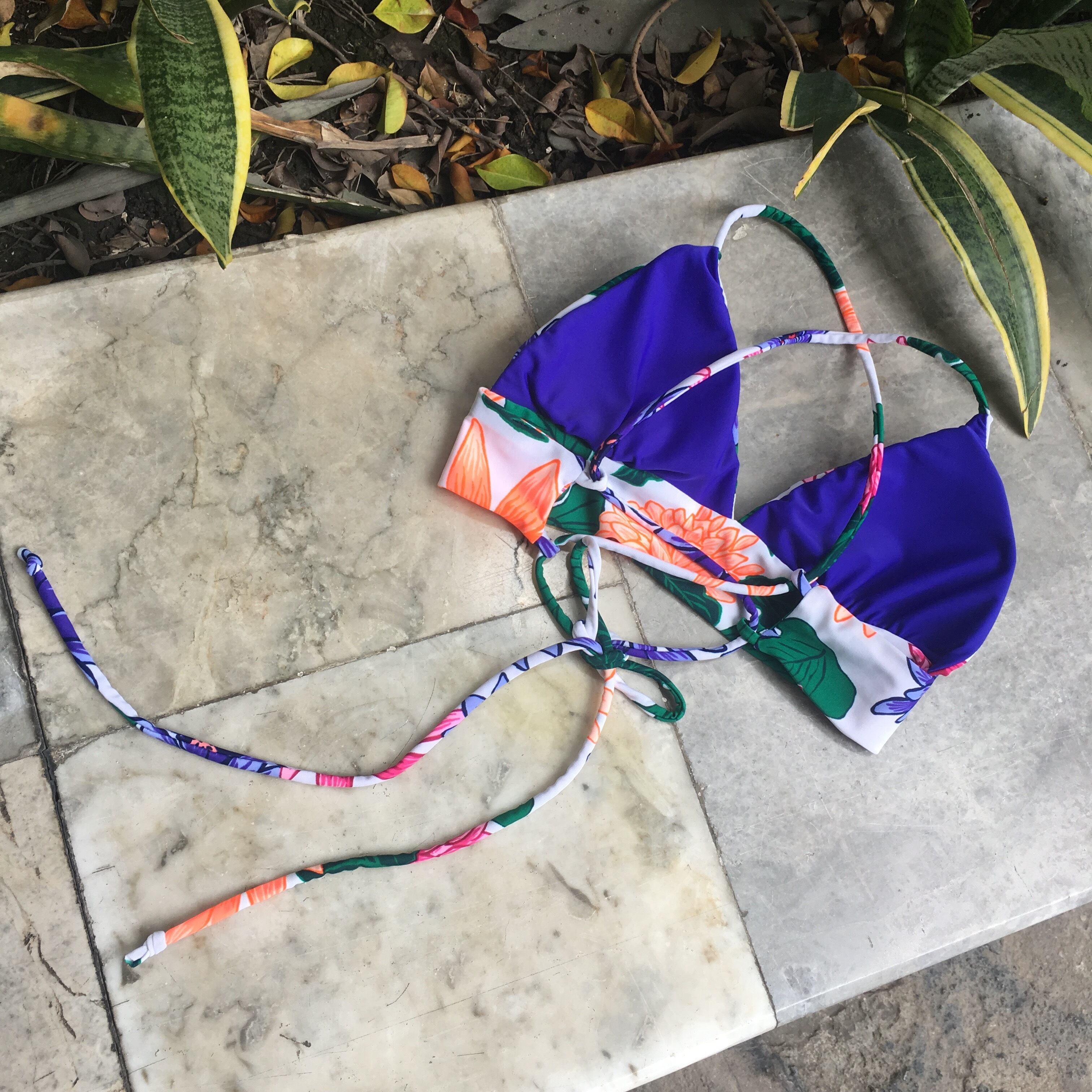 flower柄の可愛らしい、落ち着いたカラーのビキニです。